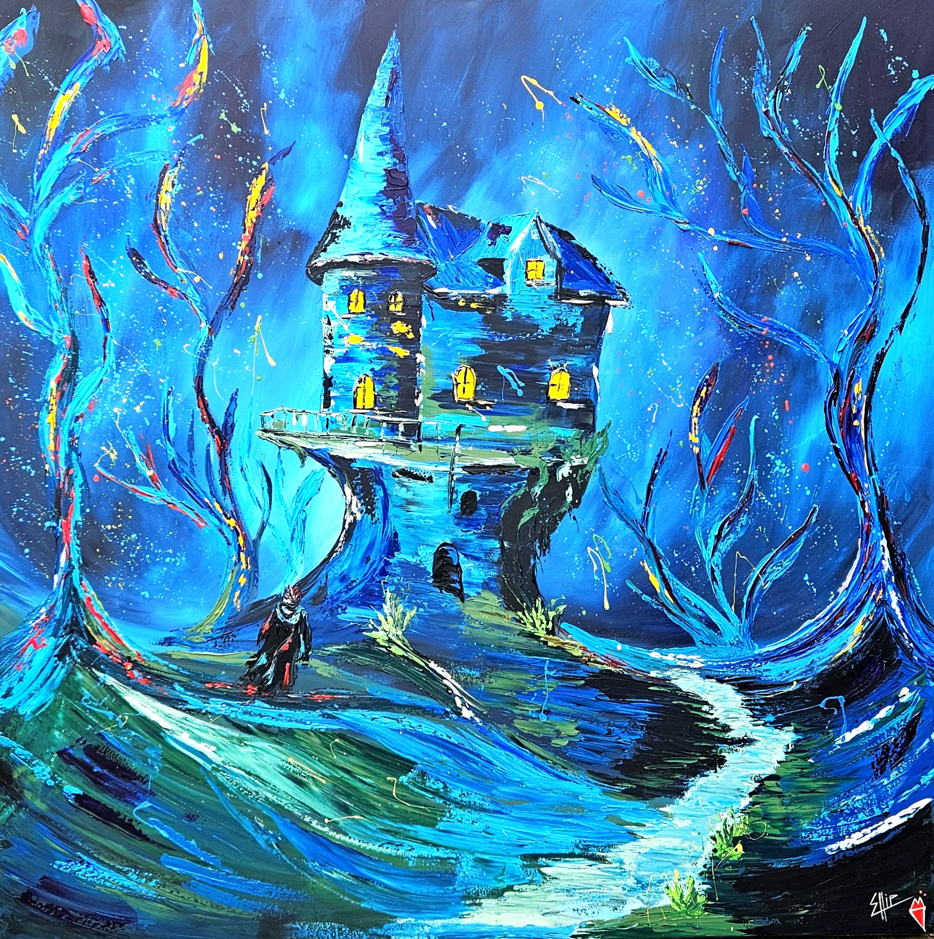 Pod pláštěm barev se skrývá věž, co šeptá stíny. Okna září, ale uvnitř tíha mlčí. Cesta k ní je klikatá jako mysl, co bloudí mezi světlem a temnotou. A přesto, i v nejhlubším tichu, zůstává jiskra, která ukazuje směr.