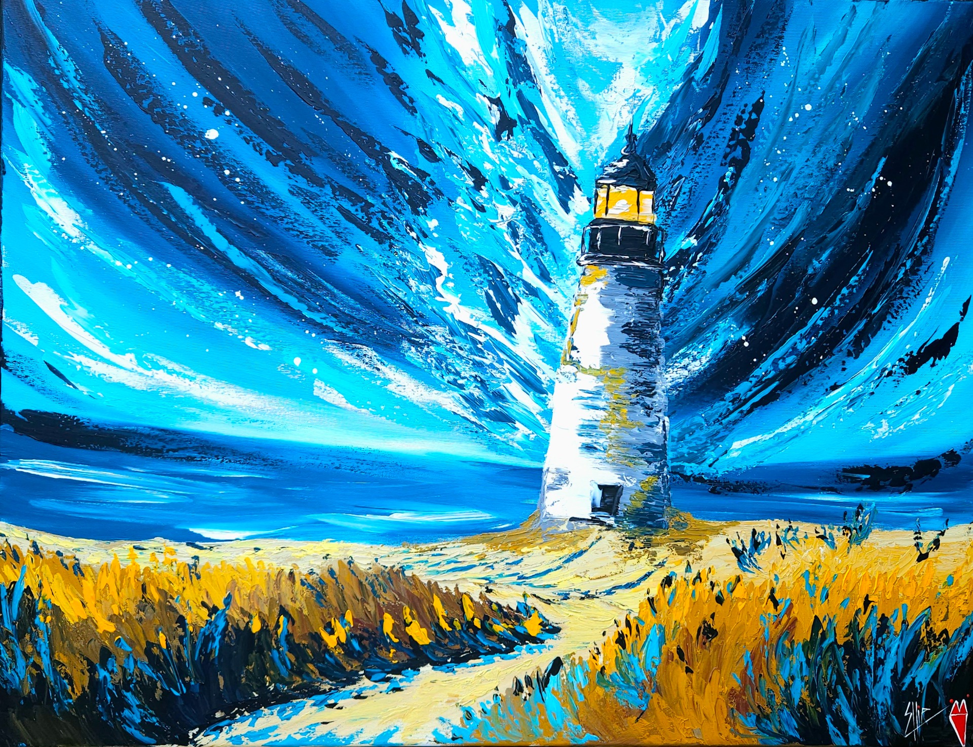 Maják se tyčí v moři ticha, kde vítr maluje plameny na oblohu. Světlo v jeho srdci plane tiše, a přesto dokáže vést ty, kdo bloudí.