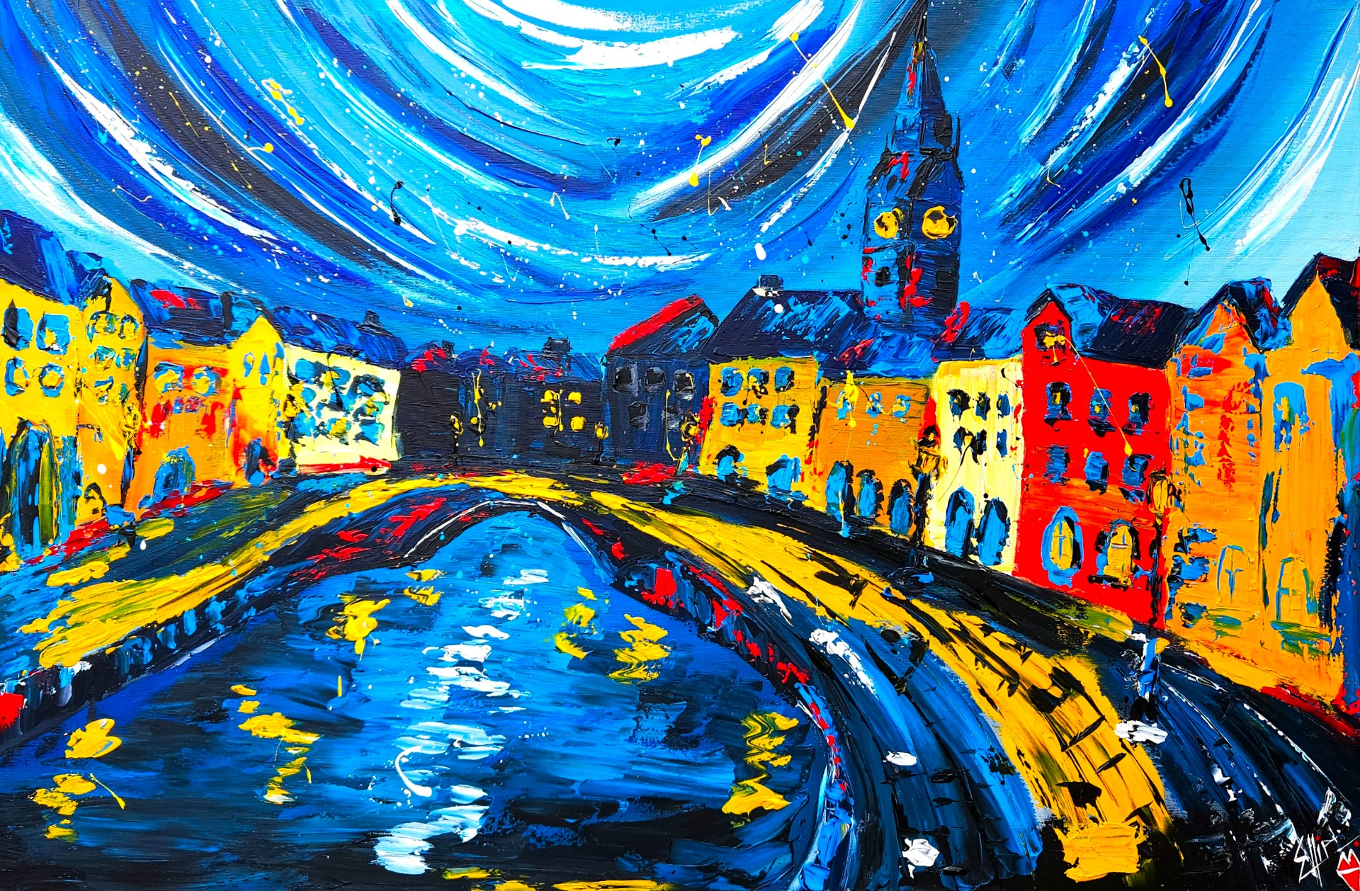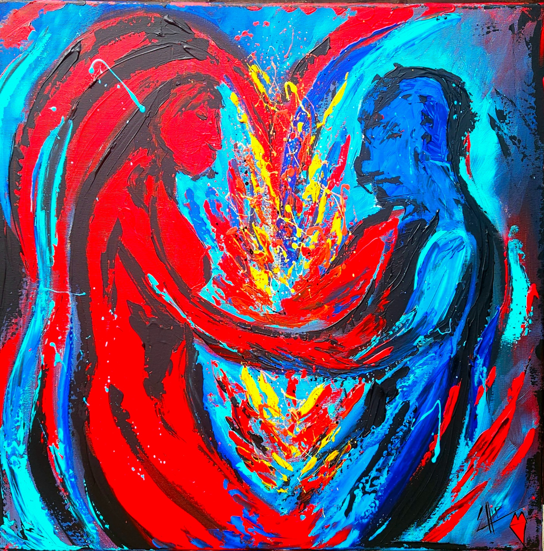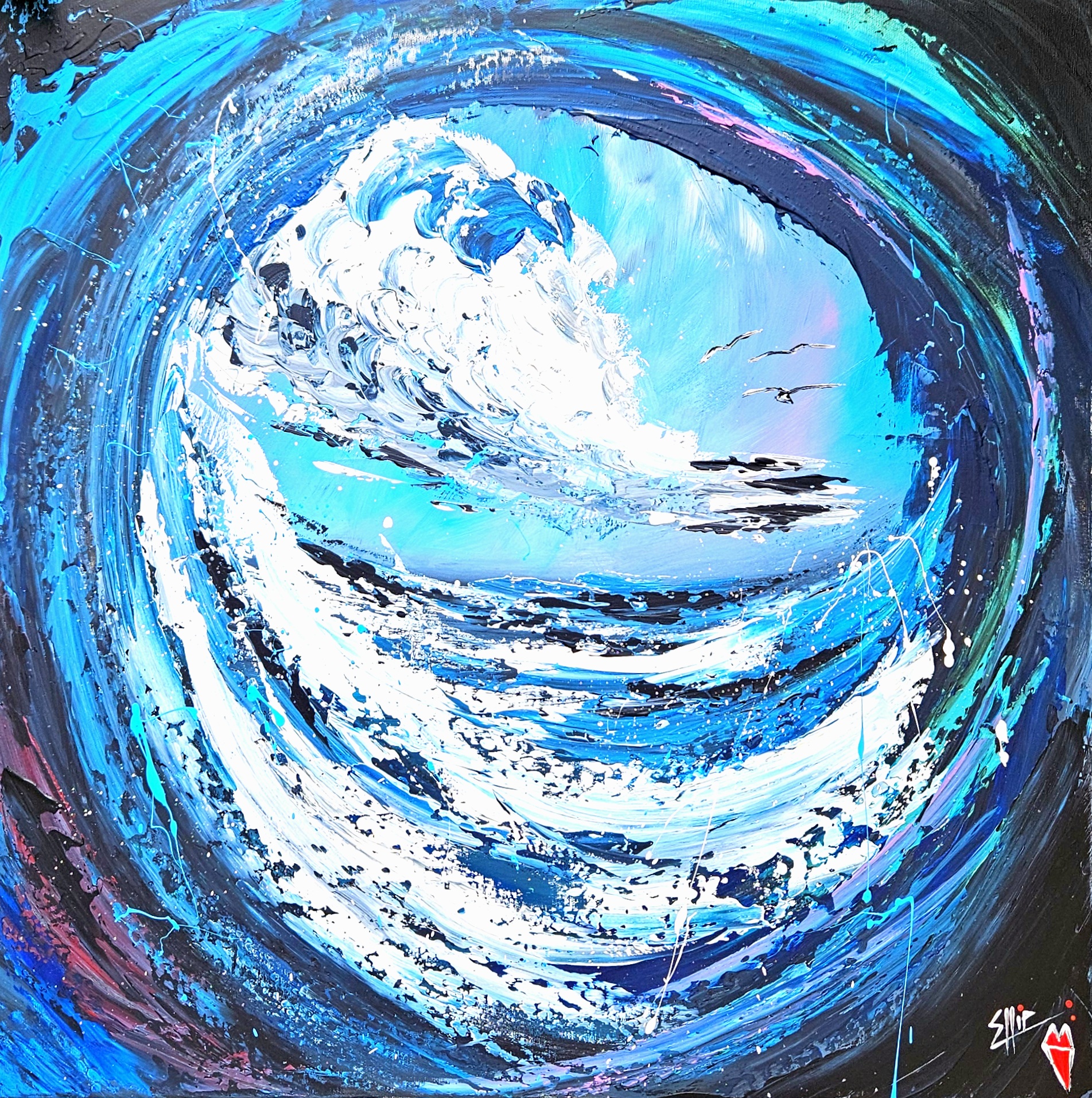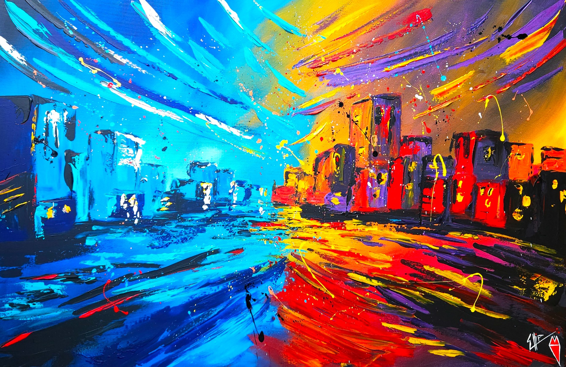 Divoký vír barev se stáčí do středu – do prázdnoty, jež neznamená konec, ale nový začátek. Každý tah štětce vypráví příběh o emocích, o cestě chaosu k rovnováze, o zápase mezi svázaností a touhou po svobodě. Barvy tančí, srážejí se, objímají i odpuzují , a přesto společně tvoří celek, který pulsuje životem.